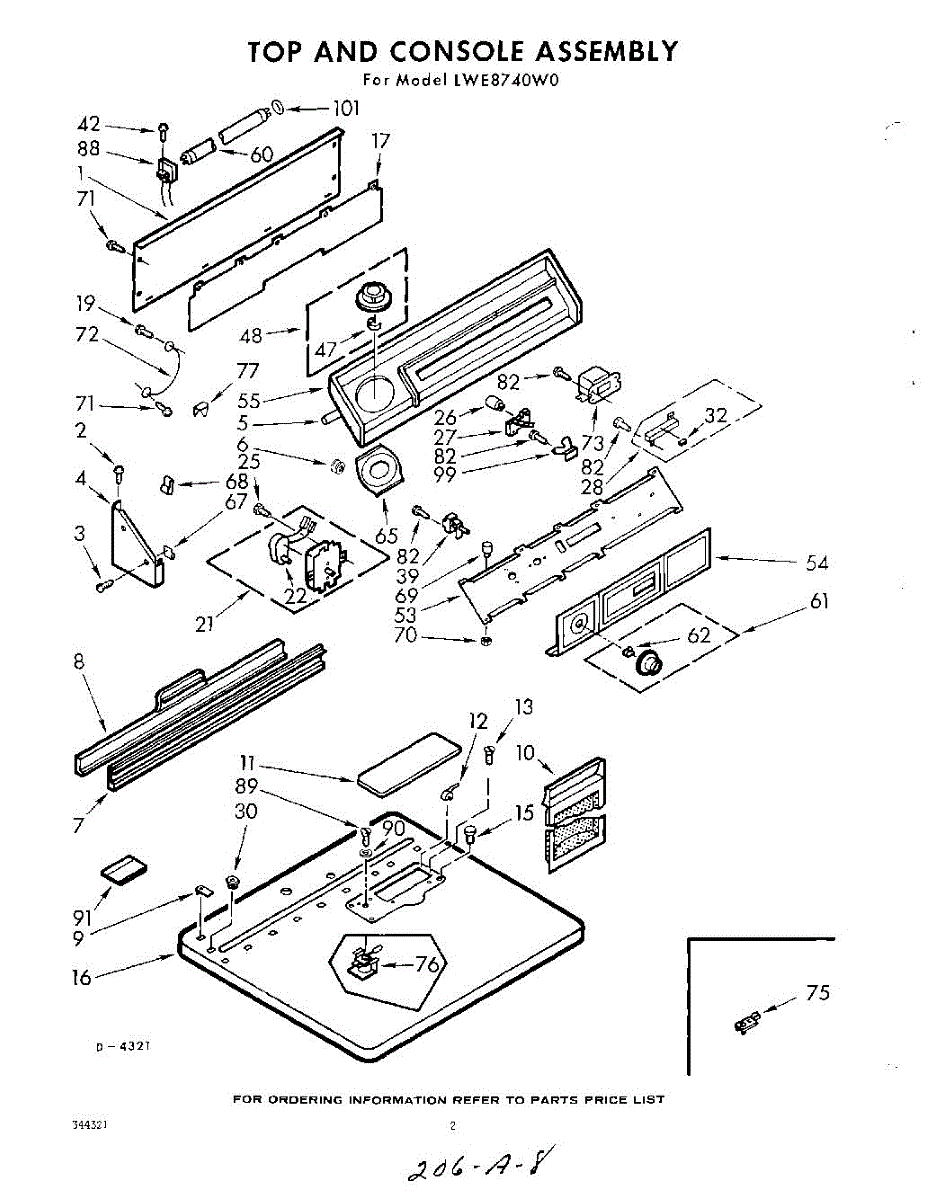 Parts for Whirlpool LWE8740W0: 02 - Top And Console Parts