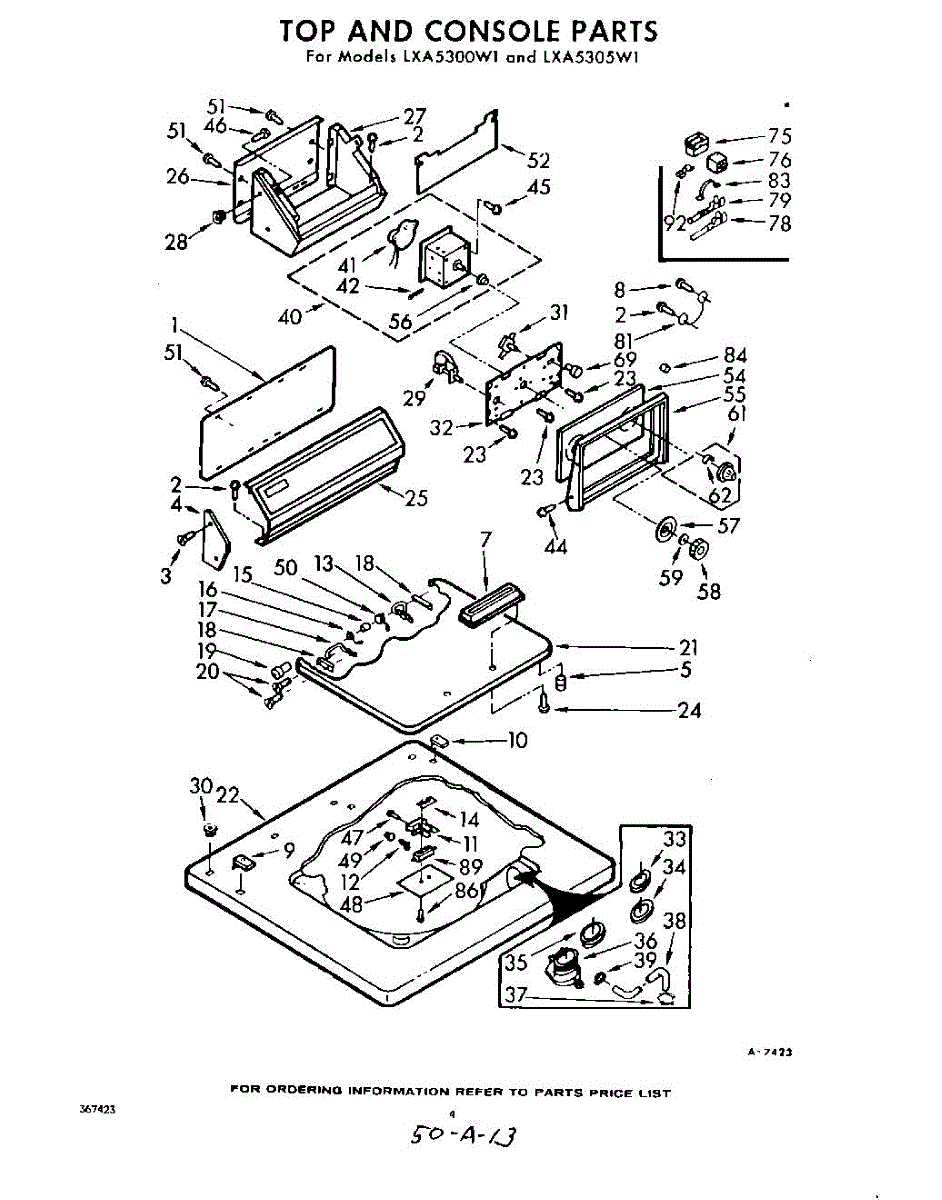 Parts for Whirlpool LXA5300W1: 04 - Top And Console Parts