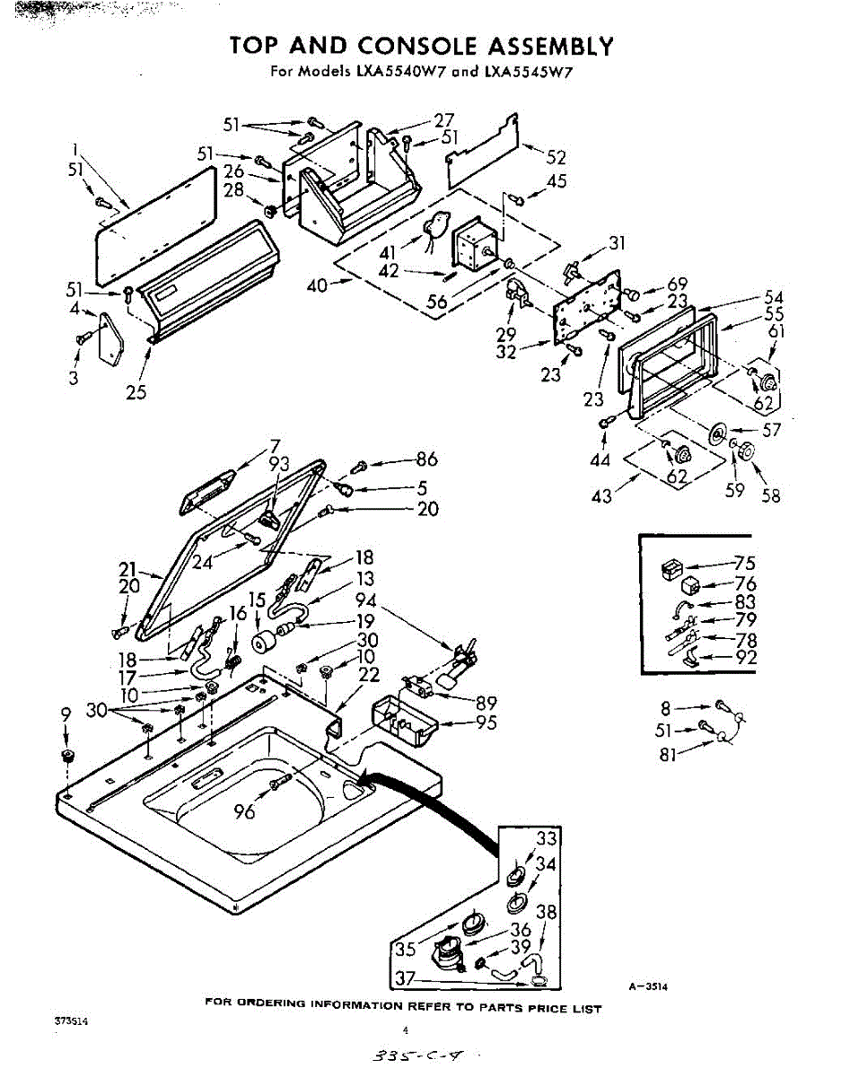 Parts for Whirlpool LXA5545W7: 04 - Top And Console Parts
