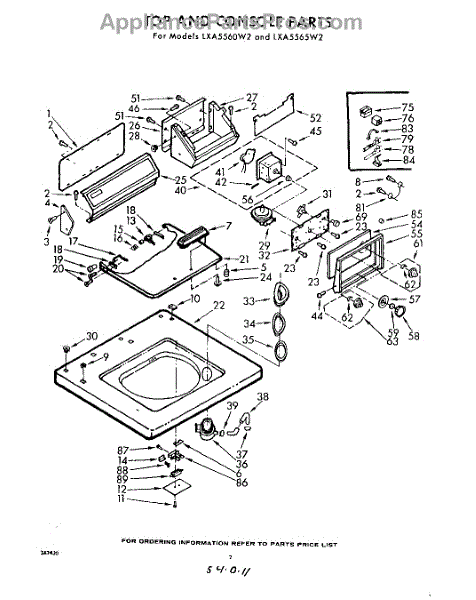 Parts for Whirlpool LXA5560W2: 02 - Top And Console Parts
