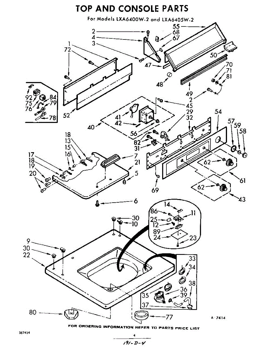 Parts for Whirlpool LXA6400W2: 04 - Top And Console Parts