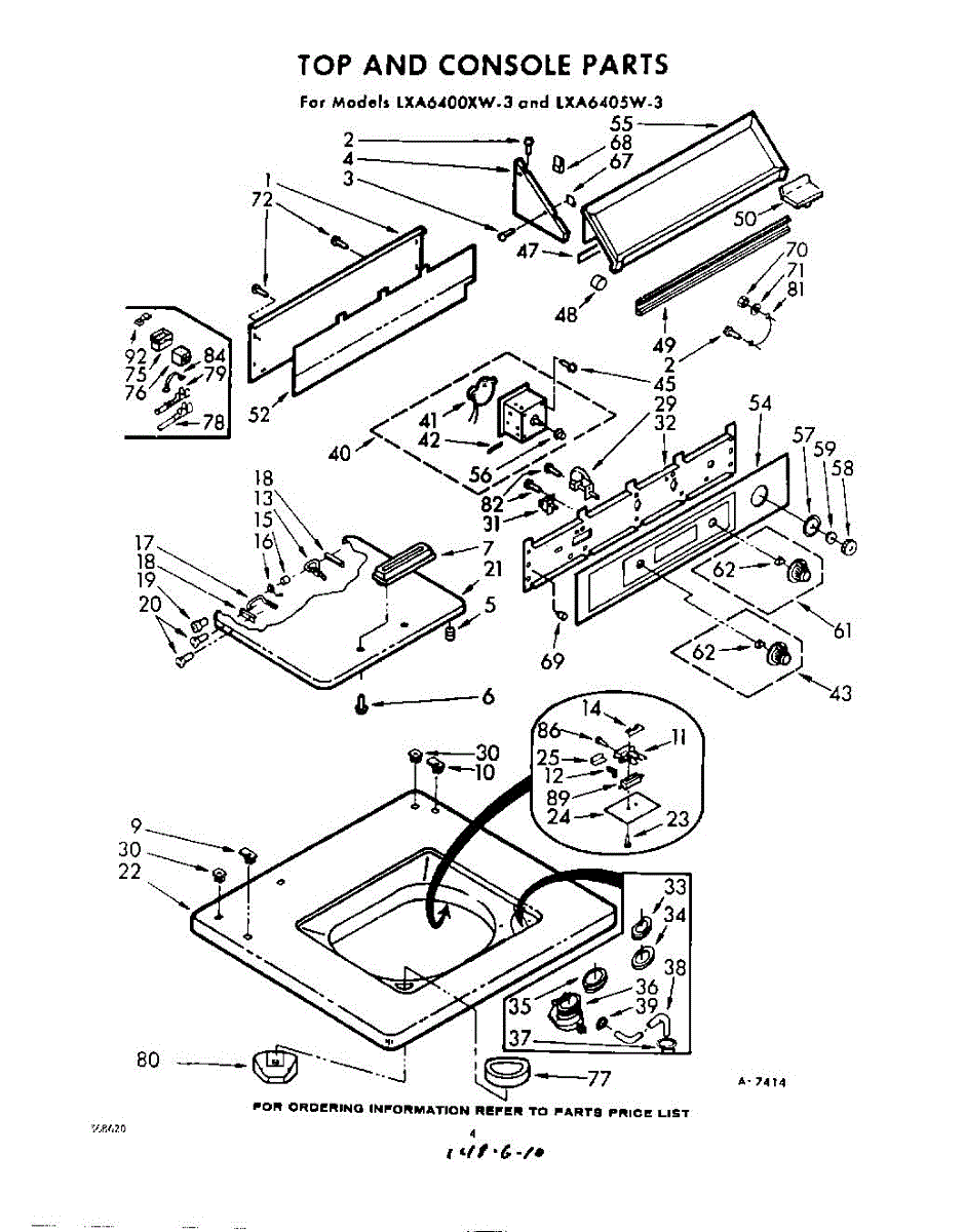 Parts for Whirlpool LXA6400W3: 04 - Top And Console Parts