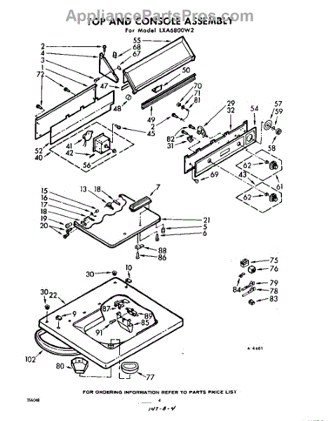 Parts for Whirlpool LXA6800W2: 04 - Top And Console Parts