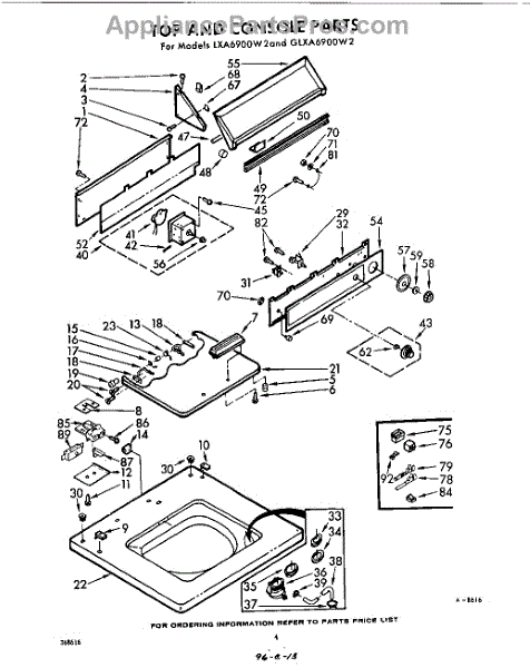 Parts for Whirlpool LXA6900W2: 04 - Top And Console Parts