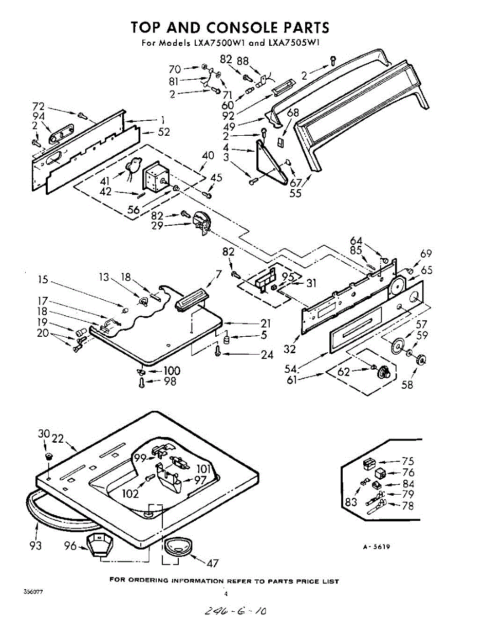 Parts for Whirlpool LXA7505W1: 04 - Top And Console Parts