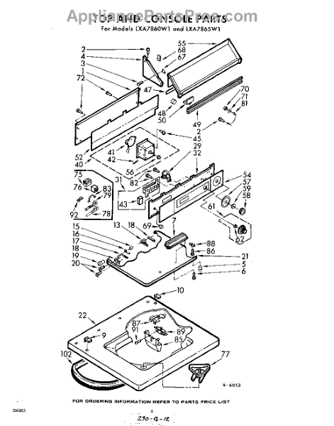 Parts for Whirlpool LXA7860W1: 04 - Top And Console Parts