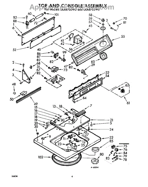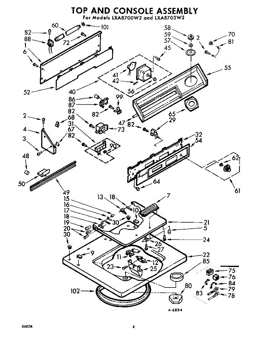 Parts for Whirlpool LXA8705W2: 04 - Top And Console Parts