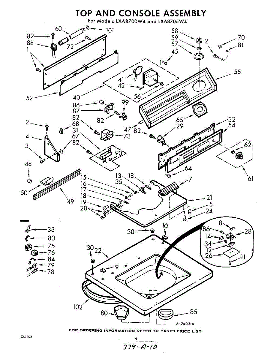Parts for Whirlpool LXA8705W4: 04 - Top And Console Parts
