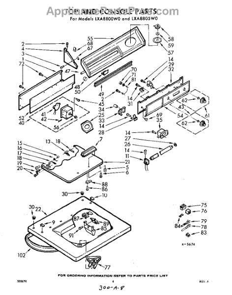 Parts for Whirlpool LXA8805W0: 04 - Top And Console Parts