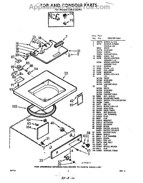 Parts for Whirlpool LXB4100W1: 04 - Top And Console Parts