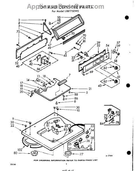 Parts for Whirlpool LXB7750W0: 04 - Top And Console Parts