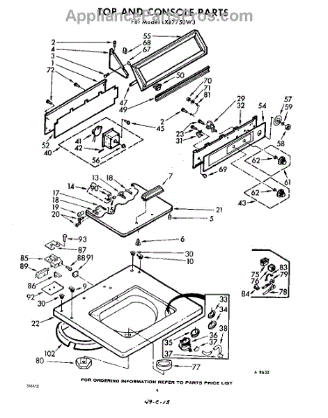 Parts for Whirlpool LXB7750W3: 04 - Top And Console Parts
