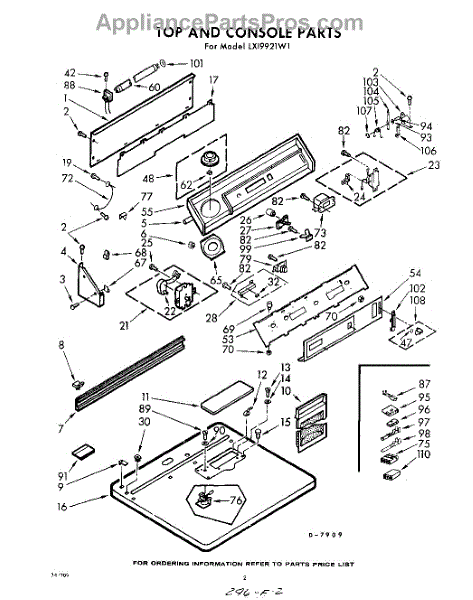 Parts for Whirlpool LXI9921W1: 02 - Top And Console Parts