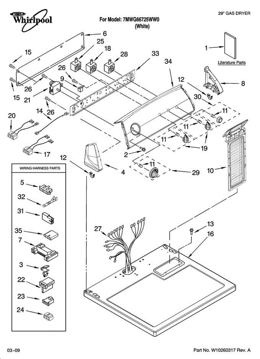Internal wiring harness for dryers. Connects electrical components inside the dryer cabinet. Replace if wires are frayed, damaged, or connectors broken.