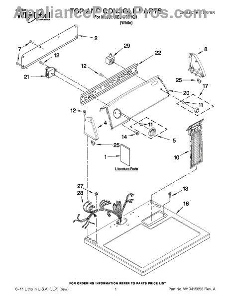 Note: For square top push to start switch, use part number W10156101.