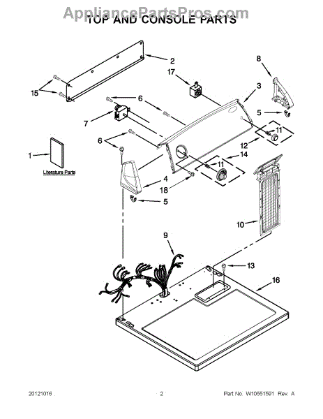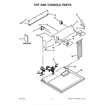 The Console Clip is an OEM part compatible with Whirlpool dryers. This clip secures the control console assembly to the top panel, ensuring it is firmly mounted during operation. Properly functioning clips are necessary to maintain the correct alignment of controls and prevent detachment.
