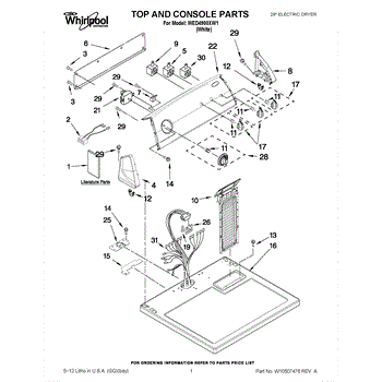The Console Clip is an OEM part compatible with Whirlpool dryers. This clip secures the control console assembly to the top panel, ensuring it is firmly mounted during operation. Properly functioning clips are necessary to maintain the correct alignment of controls and prevent detachment.