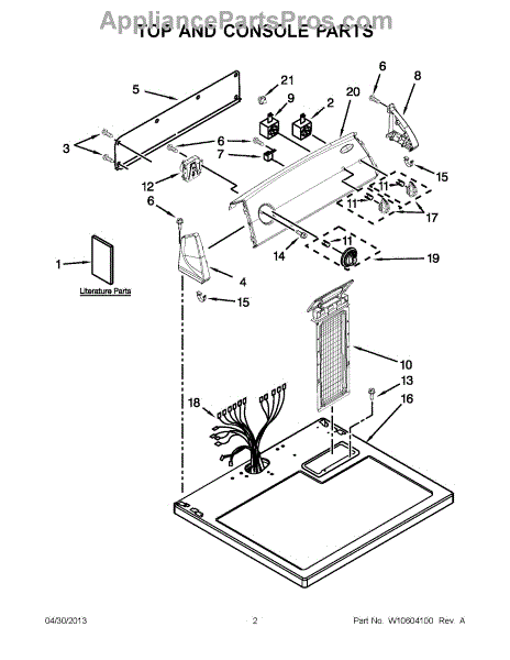 The Console Clip is an OEM part compatible with Whirlpool dryers. This clip secures the control console assembly to the top panel, ensuring it is firmly mounted during operation. Properly functioning clips are necessary to maintain the correct alignment of controls and prevent detachment.