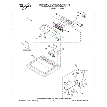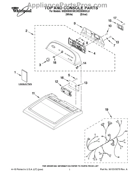 This is a dryer control panel. It Is located on the top middle of the appliance. The control panel is used as a way to manage all dryer operations, such as setting the correct temperature and ensuring the drying time is appropriate. The control panel has a number of small parts that can fail and cause problems. When this occurs, it may prevent the dryer from starting. It can also cause the dryer not to fill, drain, or spin. A screwdriver and a nut driver will be needed to replace the control panel. Unplug the dryer from the power outlet before starting. It should also be pulled away from the wall. Find the screws that hold the top panel and remove them. Pull on the panel to release the console tabs before removing the top panel completely. Take a photo of the wiring connections as a reference for installing the new control panel. Disconnect them from the old panel and remove it from the dryer before installing the new component.This control panel is an authentic OEM replacement part designed for use with Whirlpool dryers. It is directly sourced from the manufacturer and sold as an individual item.