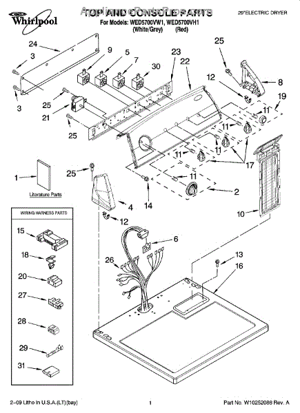 Parts for Whirlpool WED5700VH1: 01 - Top And Console Parts