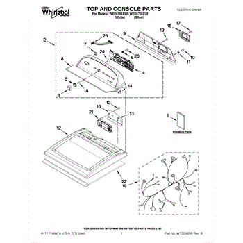 The Console Clip is an OEM part compatible with Whirlpool dryers. This clip secures the control console assembly to the top panel, ensuring it is firmly mounted during operation. Properly functioning clips are necessary to maintain the correct alignment of controls and prevent detachment.