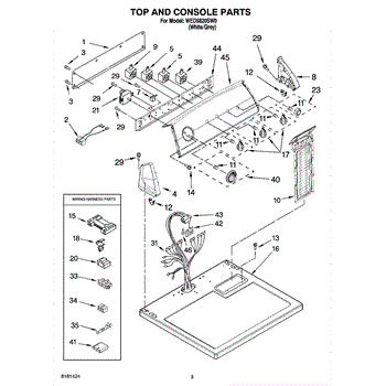 The Console Clip is an OEM part compatible with Whirlpool dryers. This clip secures the control console assembly to the top panel, ensuring it is firmly mounted during operation. Properly functioning clips are necessary to maintain the correct alignment of controls and prevent detachment.