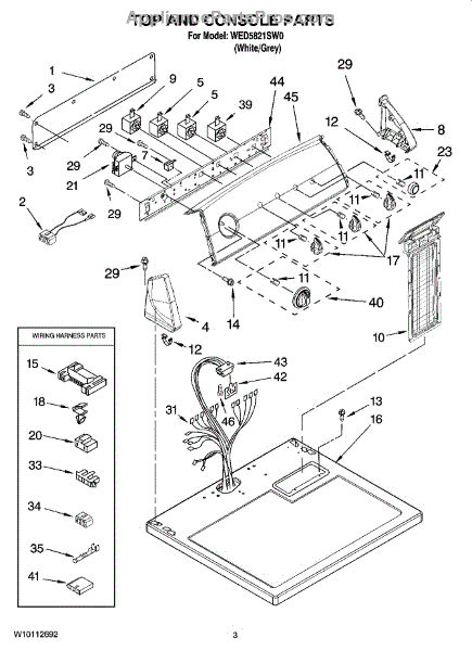 The Console Clip is an OEM part compatible with Whirlpool dryers. This clip secures the control console assembly to the top panel, ensuring it is firmly mounted during operation. Properly functioning clips are necessary to maintain the correct alignment of controls and prevent detachment.