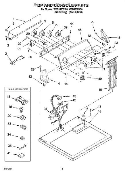 Parts for Whirlpool WED5850SG0: 02 - Top And Console Parts
