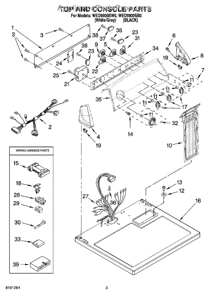 Note: For square top push to start switch, use part number W10156101.