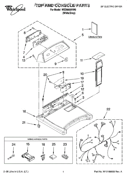 Parts for Whirlpool WED6600VW0: 01 - Top And Console Parts