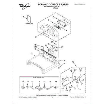 This part is the control panel for a dryer unit. This part is essential for the operation of the appliance. The control panel houses all of the controls, which means it features all of the buttons and knobs to run the drying cycles and apply any settings.When the control panel goes bad, the buttons will not work. A visual inspection may result in finding disconnected or burnt wires if this part is faulty. This control panel features a variety of connected parts and pieces that are necessary to this component. Because of the electrical component to this part, it's important to unplug the machine from the outlet before attempting to repair or replace this part.This specific control panel is compatible with dryers that are manufactured by the Whirlpool brand. It is sold individually as a high-quality part. This part is also sourced straight from the manufacturer.