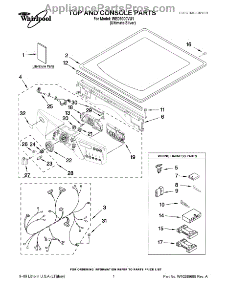 Parts for Whirlpool WED9300VU1: 01 - Top And Console Parts
