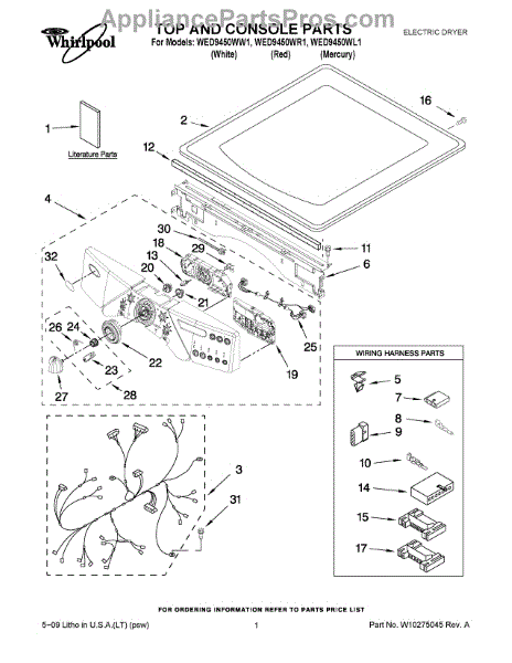 This wire harness routes electrical power and signals between components so the appliance's controls and motors operate correctly. It replaces a damaged or worn connector set to restore reliable electrical connections. What it does: