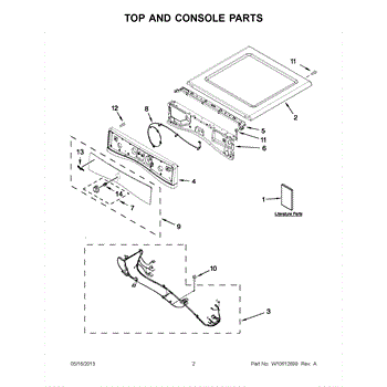 This top panel is the upper cover of your dryer's cabinet. Replace a dented, rusted, or warped panel to restore a secure, flush fit and the clean, finished look of your machine.