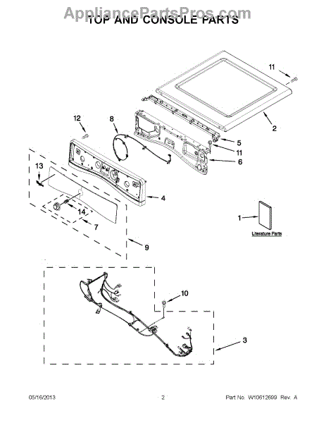 This top panel is the upper cover of your dryer's cabinet. Replace a dented, rusted, or warped panel to restore a secure, flush fit and the clean, finished look of your machine.