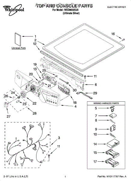 Parts for Whirlpool WED9600SU0: 01 - Top And Console Parts