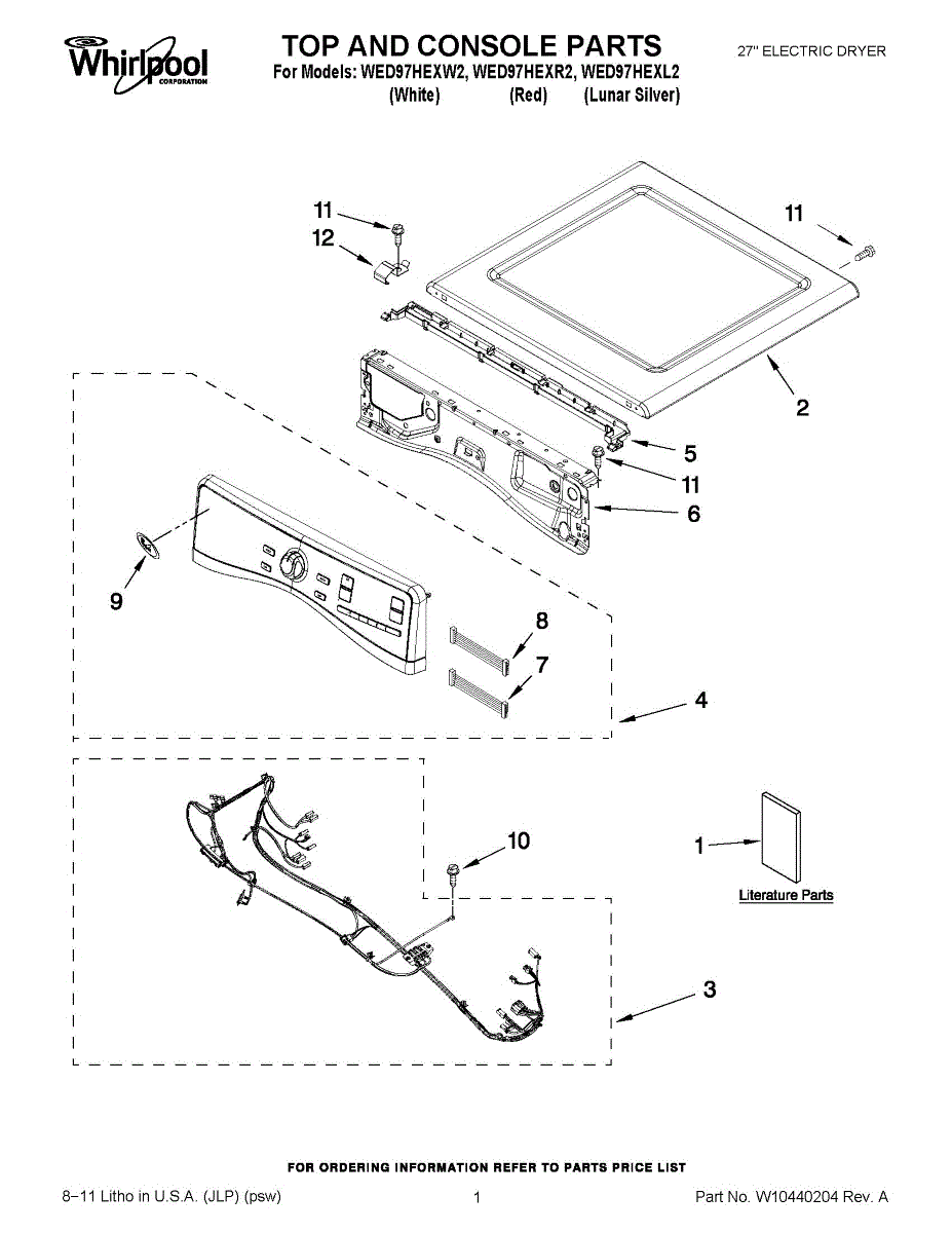 Parts for Whirlpool WED97HEXL2: 01 - Top And Console Parts
