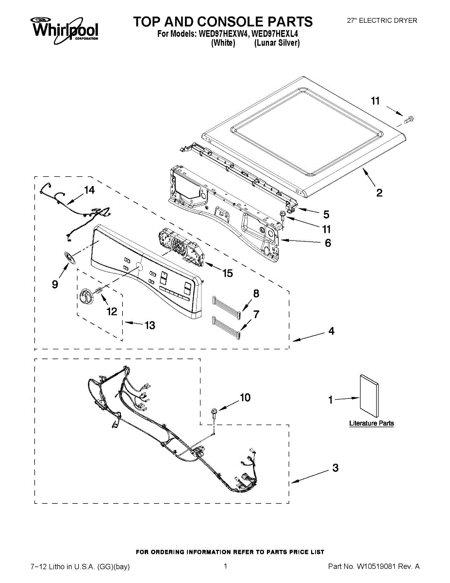 Top panel for dryers. Covers and protects the dryer's upper surface. Replace if your original panel is dented, cracked, damaged, or worn from use.