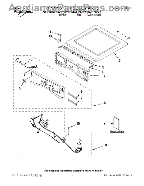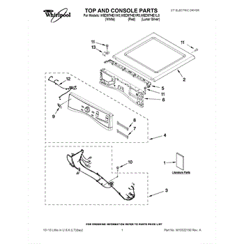 Parts for Whirlpool WED97HEXR0: 01 - Top And Console Parts