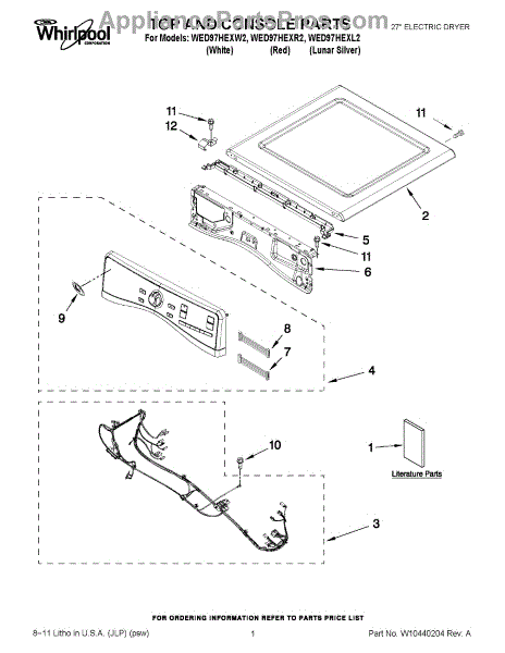 Parts for Whirlpool WED97HEXW2: 01 - Top And Console Parts