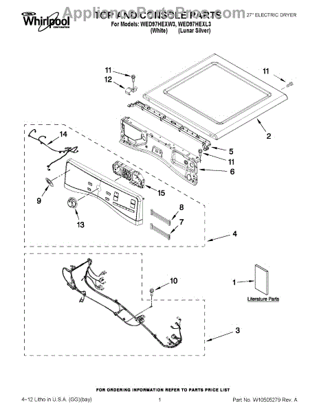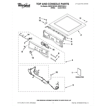 Parts for Whirlpool WED97HEXW3: 01 - Top And Console Parts