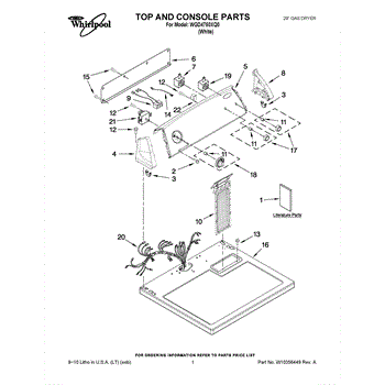 The Console Clip is an OEM part compatible with Whirlpool dryers. This clip secures the control console assembly to the top panel, ensuring it is firmly mounted during operation. Properly functioning clips are necessary to maintain the correct alignment of controls and prevent detachment.