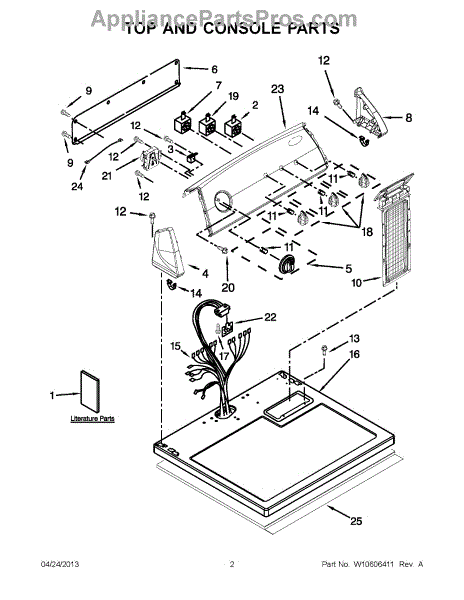 The Console Clip is an OEM part compatible with Whirlpool dryers. This clip secures the control console assembly to the top panel, ensuring it is firmly mounted during operation. Properly functioning clips are necessary to maintain the correct alignment of controls and prevent detachment.