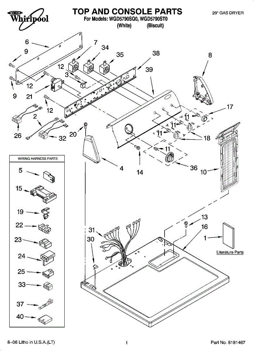 Internal wiring harness for dryers. Connects electrical components inside the dryer cabinet. Replace if wires are frayed, damaged, or connectors broken.