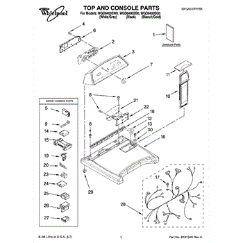 Parts for Whirlpool WGD6400SW0: 01 - Top And Console Parts