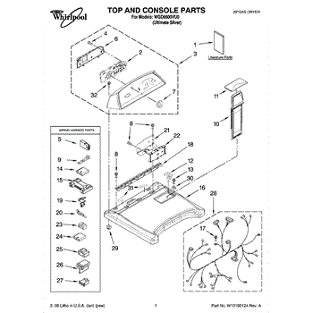 Parts for Whirlpool WGD6600VU0: 01 - Top And Console Parts
