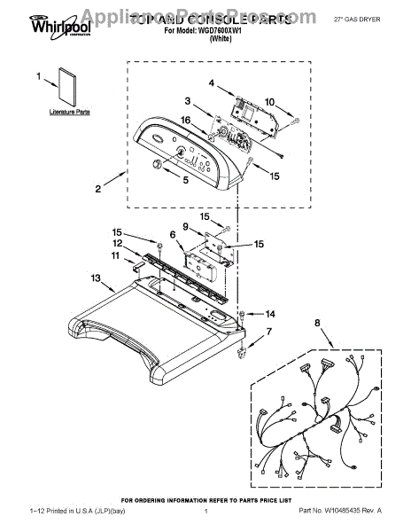 This part is the control panel for a dryer unit. This part is essential for the operation of the appliance. The control panel houses all of the controls, which means it features all of the buttons and knobs to run the drying cycles and apply any settings.When the control panel goes bad, the buttons will not work. A visual inspection may result in finding disconnected or burnt wires if this part is faulty. This control panel features a variety of connected parts and pieces that are necessary to this component. Because of the electrical component to this part, it's important to unplug the machine from the outlet before attempting to repair or replace this part.This specific control panel is compatible with dryers that are manufactured by the Whirlpool brand. It is sold individually as a high-quality part. This part is also sourced straight from the manufacturer.