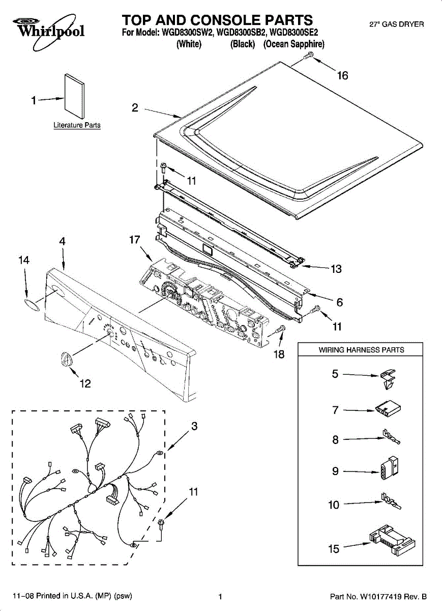 Wire harness for dryers. Connects electrical components inside the dryer cabinet. Replace if wires are frayed, damaged, or connections are loose or broken.