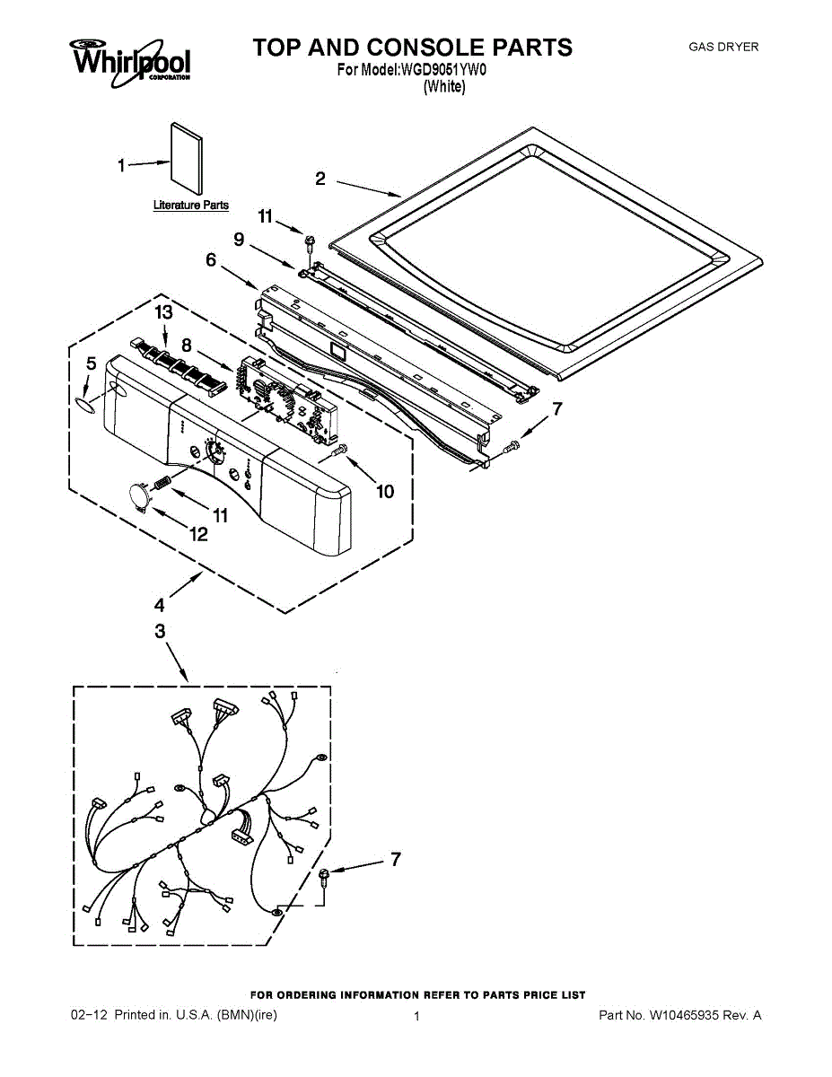 White dryer top panel that covers the drum and internal components. Replace if cracked, damaged, rusty, or worn from heavy use or chemical spills.
