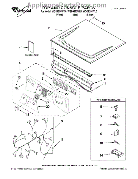 Parts for Whirlpool WGD9250WW0: 01 - Top And Console Parts